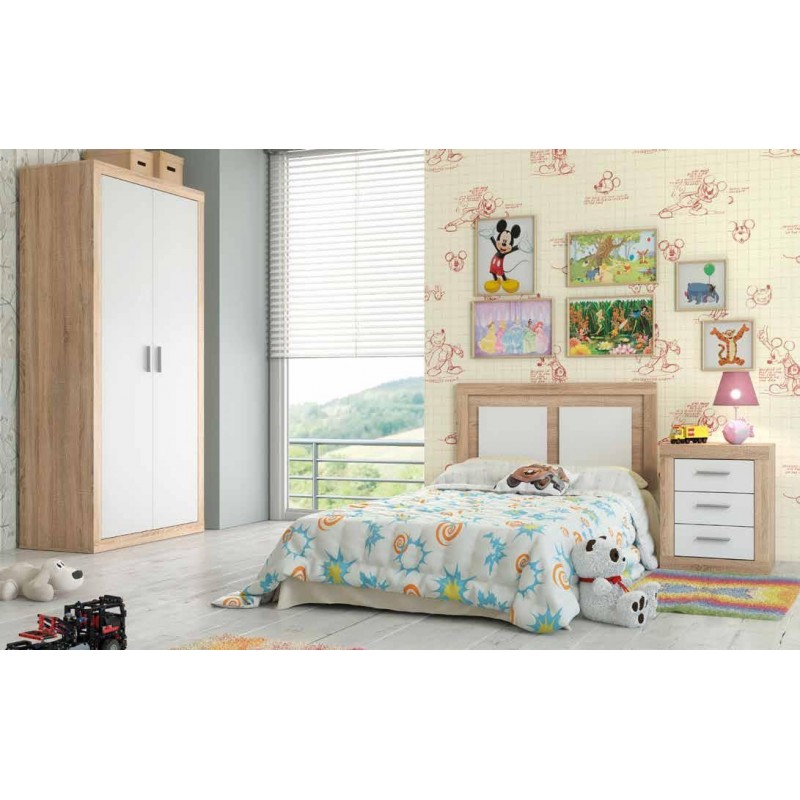Producto en formato KIT Compuesto por cabecero juvenil y mesilla de 3 cajones. Colores: Cambria-Blanco y Cambria-Grafito. Medidas Cabecero: 59 x 110 x 3 cm. (Al x An x Fn) Medidas Mesilla: 60 x 50 x 34,6 cm. (Al x An x Fn)