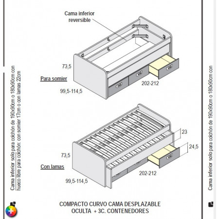 Tablero melaminizado de 16mm. y 30mm, cantos sintéticos.