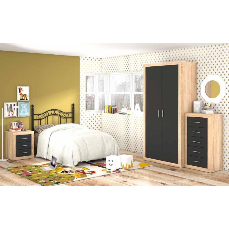 Compuesto por Cabecero de Forja y mesilla de 3 cajones.