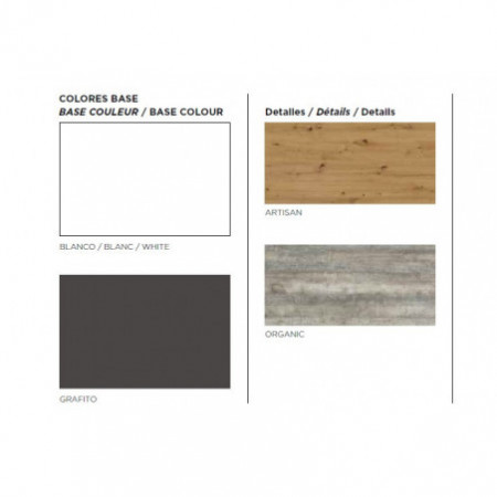 Colores: Blanco, GRAFITO .ARTISAN Y ORGANIC. Medidas: 42,-57, x 100 x 50 cm. (Al x An x Fn.)