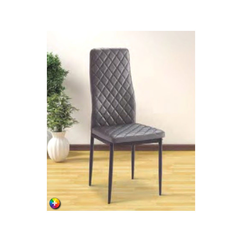 Tapizado: PU Colores tapizado: gris Patas: metalicas pintadas color negro Medidas: 96 x 40,5 x 49 cm. (Al x An x Fn) Disponible en juegos de 6 unidades