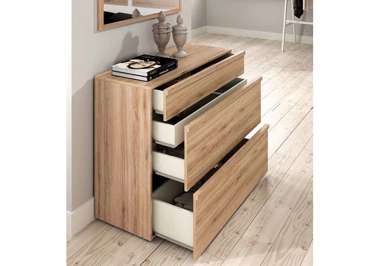 - Cajones con guías metálicas de rueda con tope.