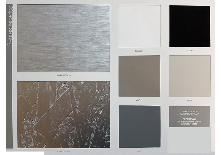• Colores frentes Lacados: Blanco, Negro, Visón, Beige, Gris, Metalic y Mineral.