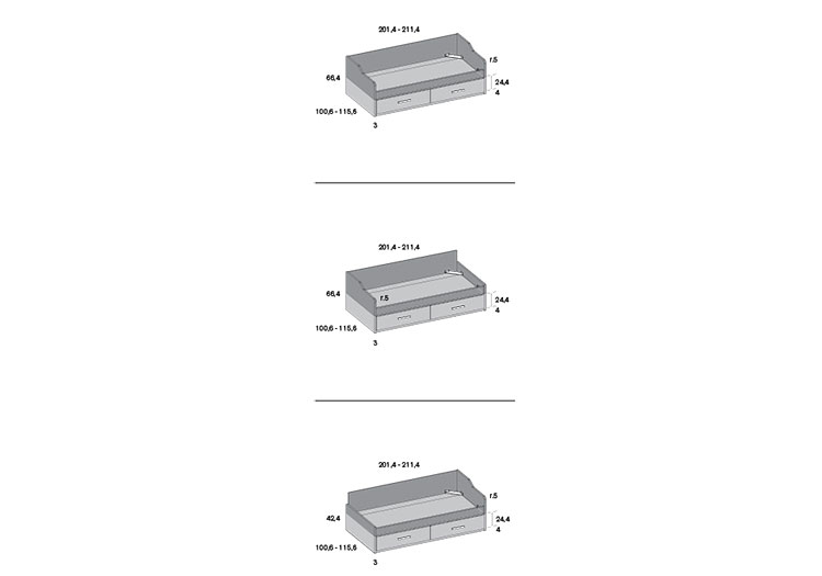 - Bisagras regulables tridimensionalmente, con amortiguador de autocierre y sistema automático de montaje de la bisagra al suplemento.