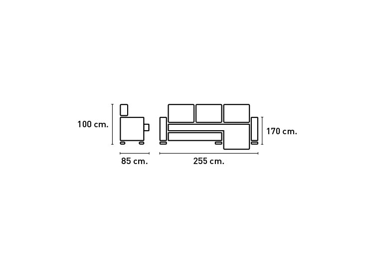 - Medidas: 100 x 255 x 85-170 cm. (Al x An x Fn)