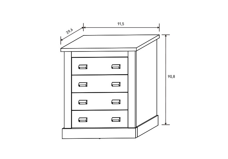 Medidas Cómoda: 90,8 x 91,5 x 39,6 cm. (Al x An x Fn)