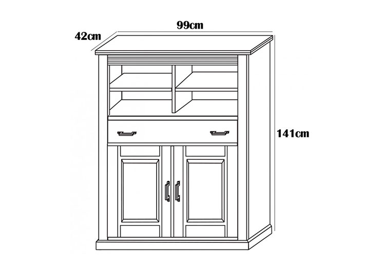 Medidas Bodeguero: 141 x 99 x 42 cm. (Al x An x Fn)