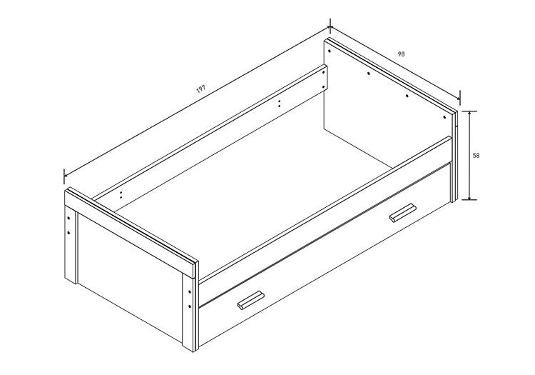 Medidas: 58 x 197 x 98 cm. (Al x An x Fn)