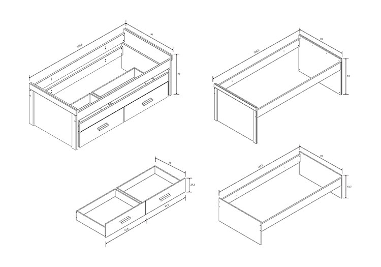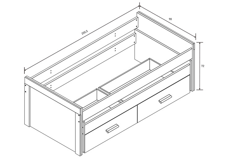Medidas: 72 x 200,5 x 98 cm. (Al x An x Fn)