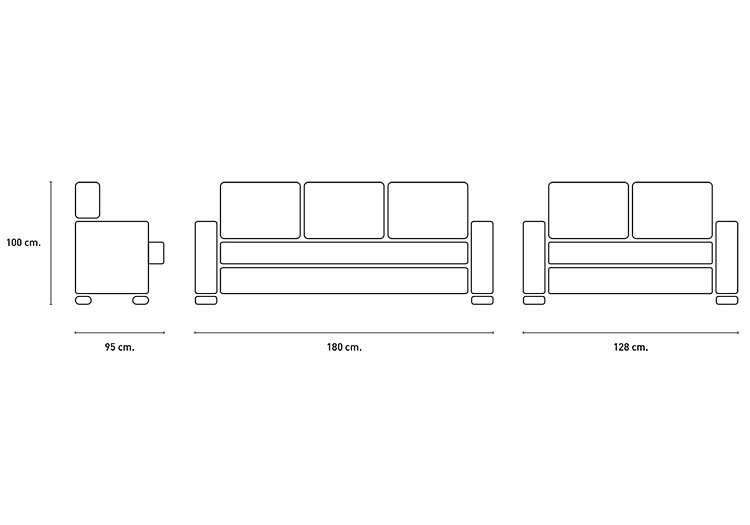 - Medidas 3 Plazas: 100 x 180 x 95 cm (Al x An x Fn)