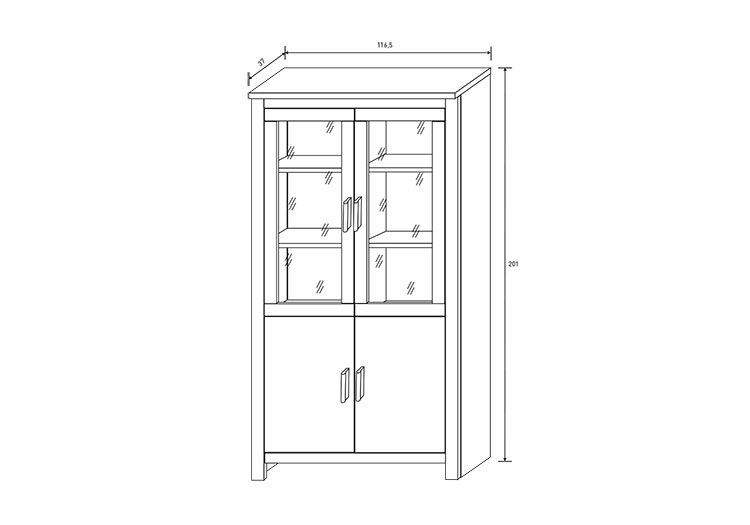 - Medidas Vitrina 2P: 201 x 177 x 37 cm. (Al x An x Fn)