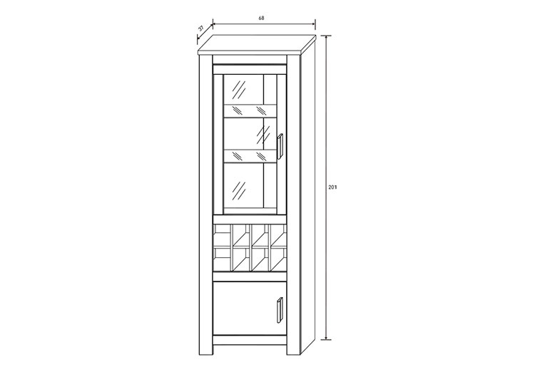 - Medidas Vitrina: 201 x 68 x 37 cm (Al x An x Fn)