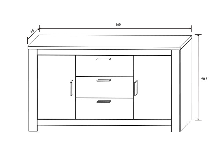 Medidas: 91 x 160 x 45 cm (Al x An x Fn)