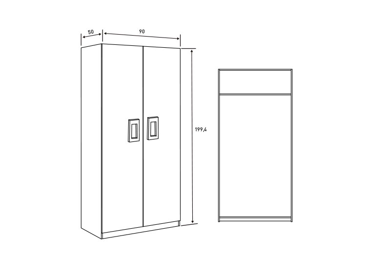 - Medidas Armario: 199,4 x 90 x 50 cm. (Al x An x Fn)
