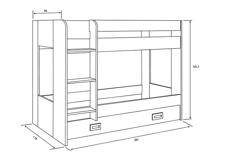 Medidas: 145,2 x 201 x 118 cm. (Al x An x Fn)