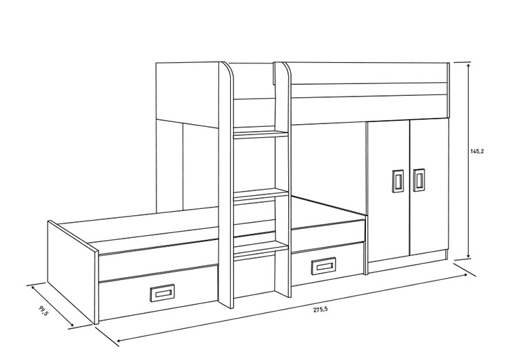 Medidas: 145,2 x 275 x 99,5 cm. (Al x An x Fn)