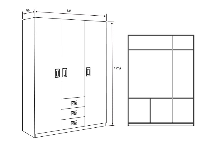 Medidas: 199,4 x 135 x 50 cm. (Al x An x Fn)