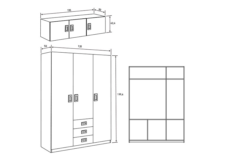 Medidas: 241,8 x 135 x 50 cm. (Al x An x Fn)