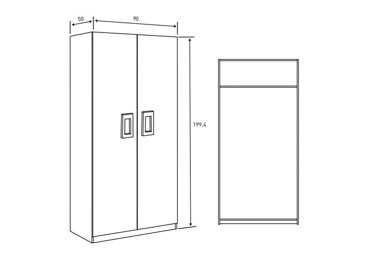 Medidas: 199,6 x 90 x 50 cm. (Al x An x Fn)
