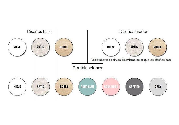 Todos los cajones llevaran el mismo color.