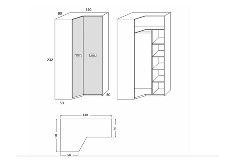 Medidas: 232 x 90-140 x 50 cm. (Al x An x Fn)