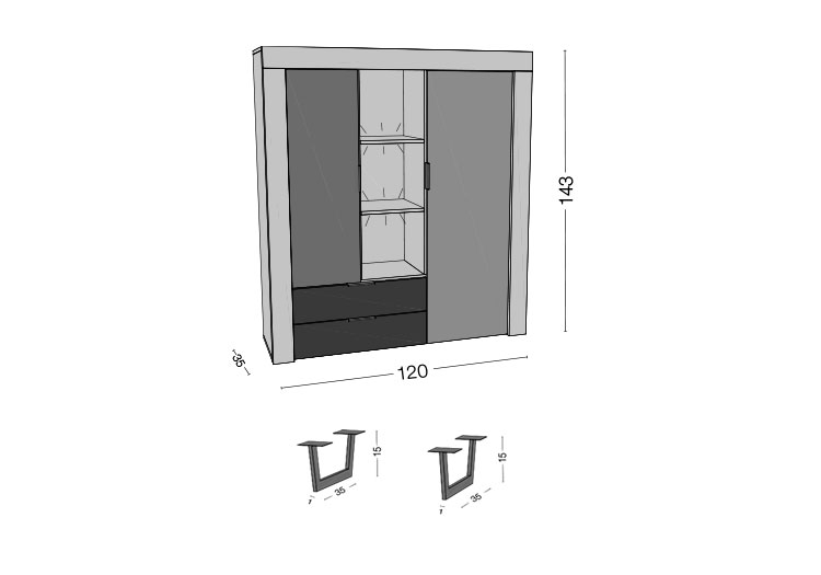 - Medidas: 158 x 120 x 35 cm. (Al x An x Fn)