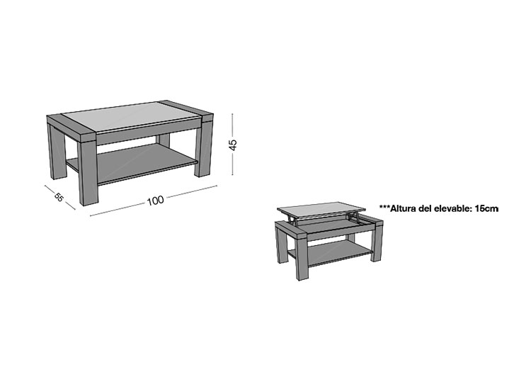 Medidas: 45-60 x 100 x 55 cm. (Al x An x Fn)
