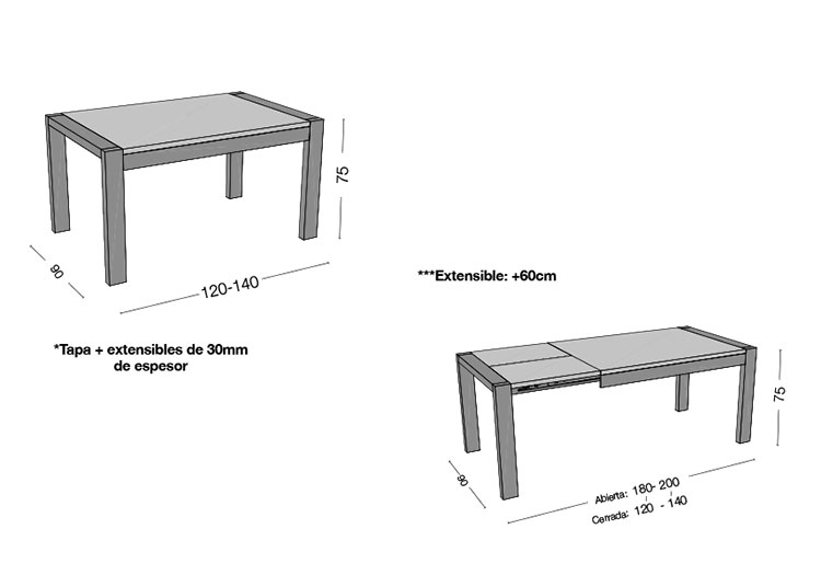 Medida: 140 cm, (Ext. 200 cm)