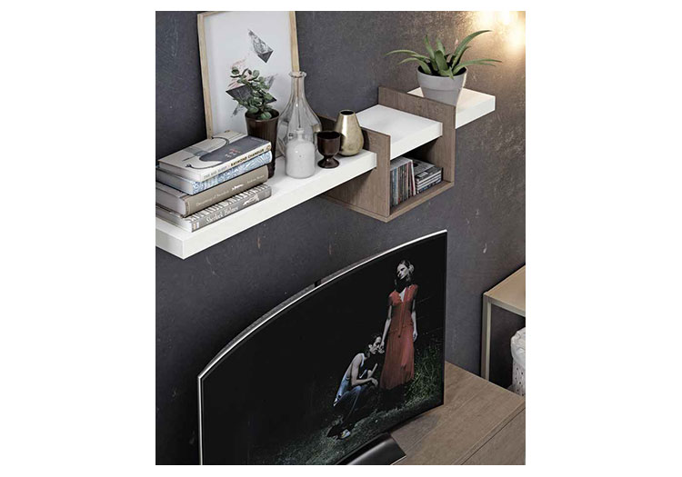 - Estantes de cristal en vitrinas con opción de luces LED (no incluido), con encendido a distancia e iluminación regulable.