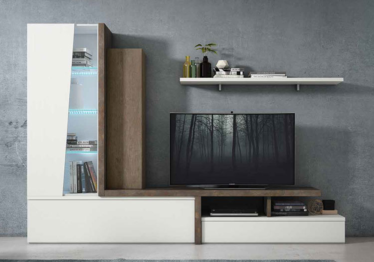 - Estantes de cristal en vitrinas con opción de luces LED (no incluido), con encendido a distancia e iluminación regulable.