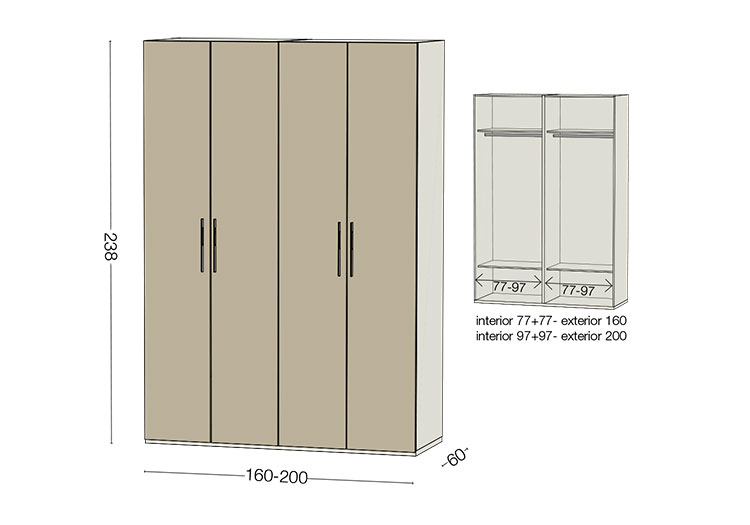- Todos las traseras interiores de armario se realizan en acabado cuero.