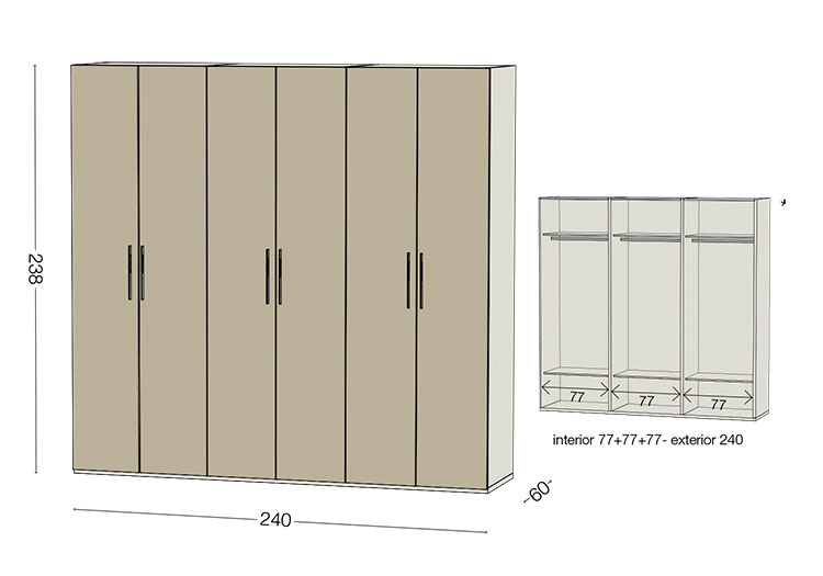 - Medidas: 238 x 240 x 60 cm. (al x an x fn)