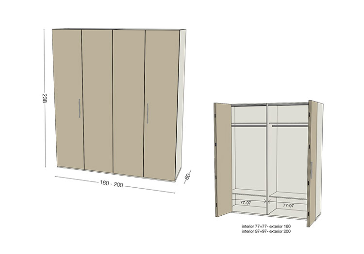 - Todos las traseras interiores de armario se realizan en acabado cuero.