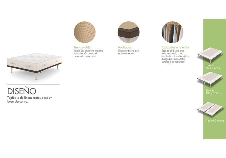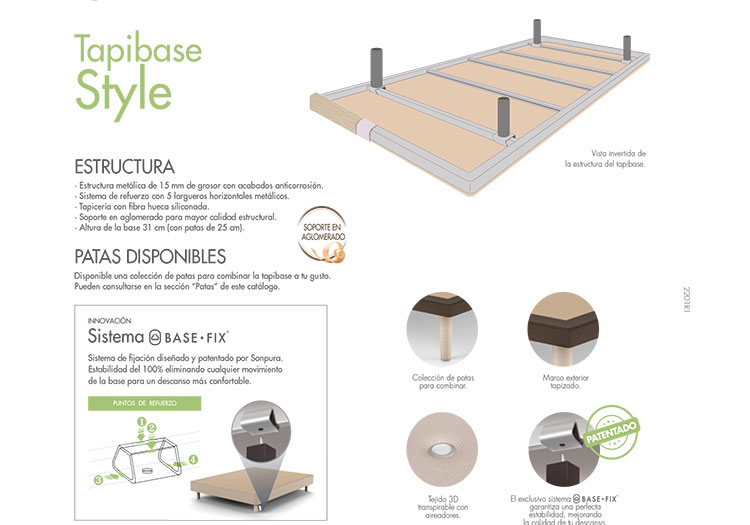 - Disponible una colección de patas para combinar la tapibase a tu gusto. No incluidas en el precio.