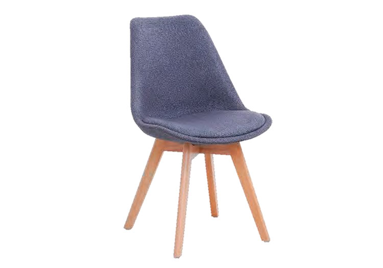 - Silla de comedor estilo Nórdico con asiento y respaldo fabricados en tela y patas en madera de roble.