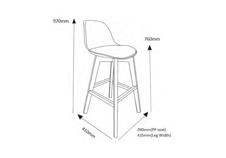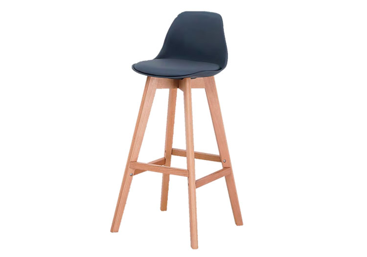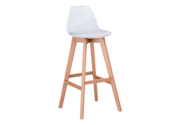 - Silla de bar estilo Nórdico con respaldo fabricado en ABS, asiento acolchado en PU (símil piel) y patas de madera de haya .
