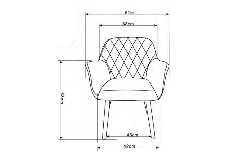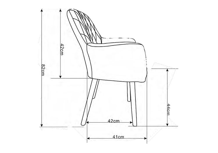 - Sillón de comedor estilo Contemporáneo con asiento y respaldo fabricados en tela y patas metálicas lacadas efecto haya.