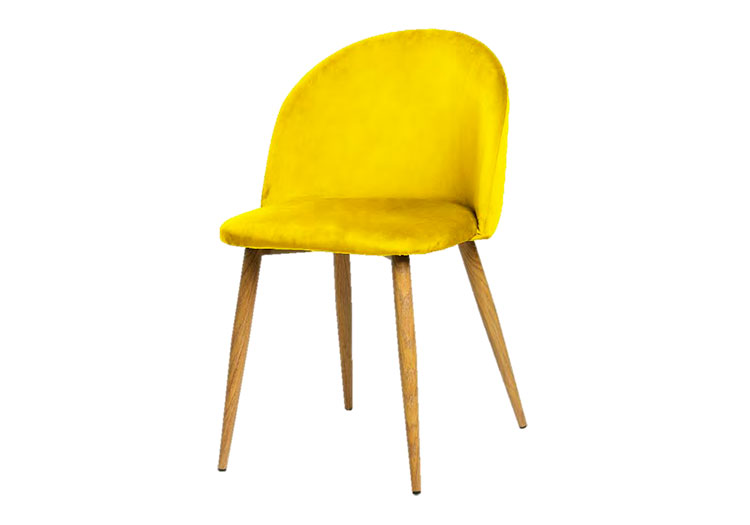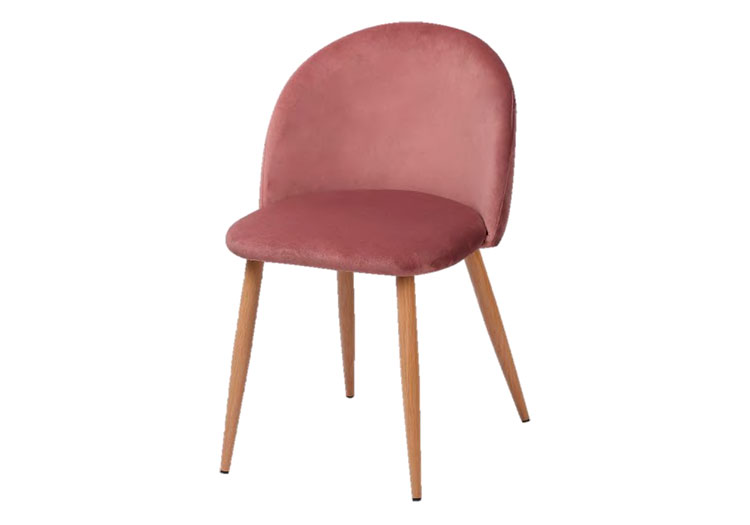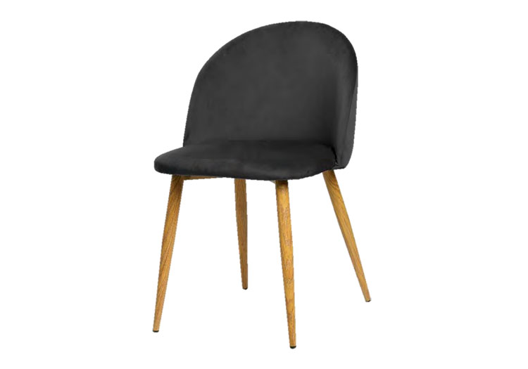 - Silla de comedor comedor estilo Vintage con asiento y respaldo fabricados en terciopelo y patas metálicas lacadas efecto roble.