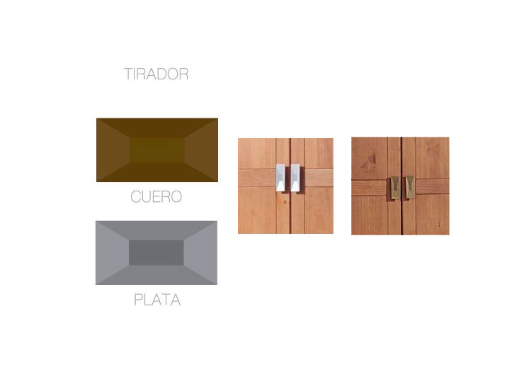 - Los tiradores son metálicos y puede elegirlos en dos colores: cuero o plata