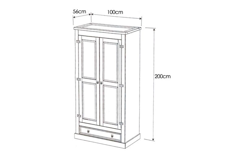 Medidas: 200 x 100 x 56 cm. (Al x An x Fn)