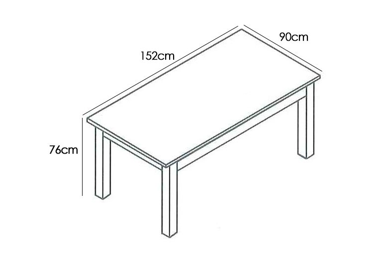Medidas Mesa: 76 x 152 x 90 cm. (Al x An x Fn)