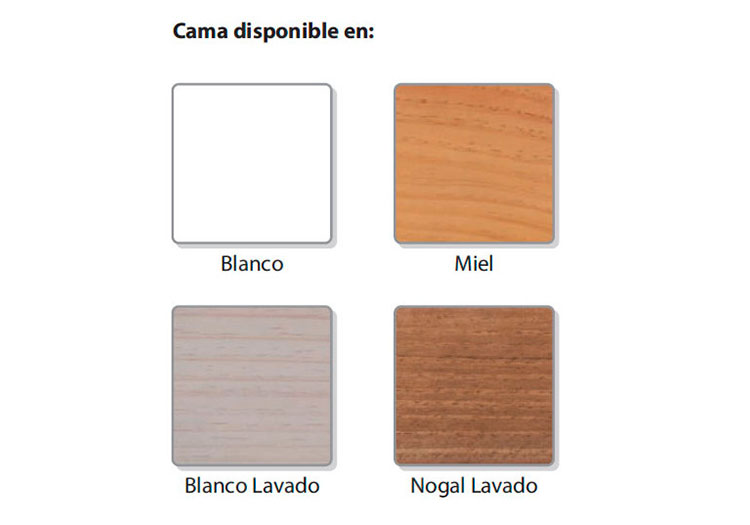 - Colores: Blanco, Miel, Nogal Lavado y Blanco Lavado.