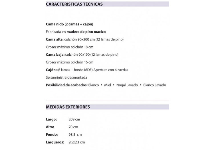 - Cama Inferior: Para Colchón de 90x190 cm. (Grosor máximo 16 cm.)2