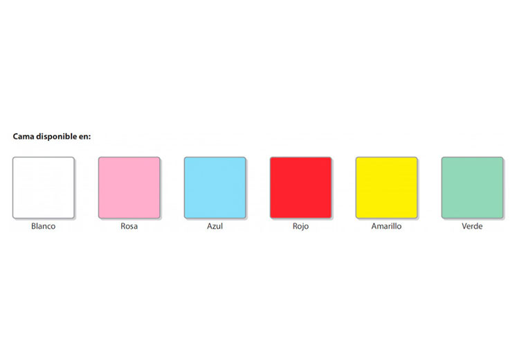 - Colores: Blanco, Rosa, Azul, Rojo, Amarillo y Verde.