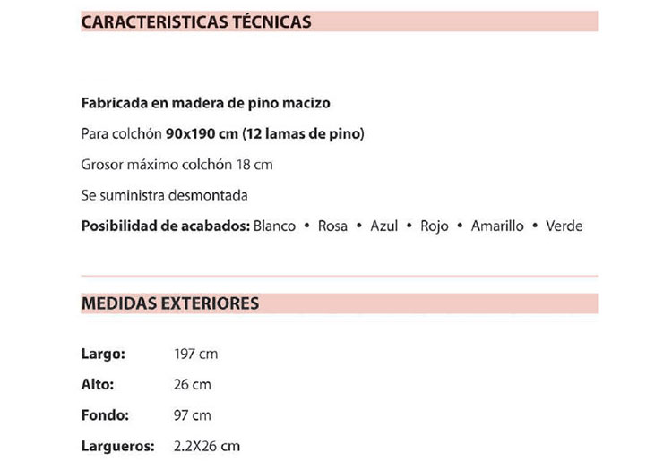 - Para Colchón de 90x190 cm.