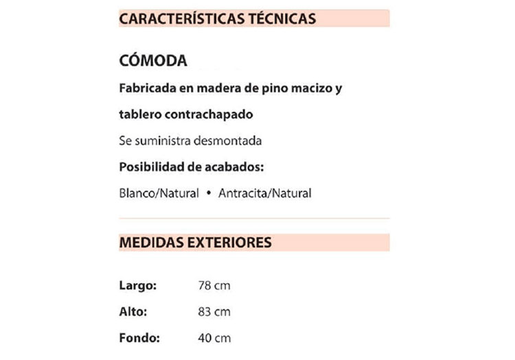 Fabricada en madera de pino macizo y tablero contrachapado.