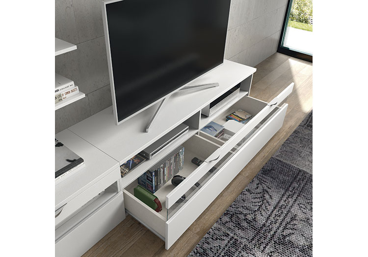 - Tiradores metálicos de aluminio y Zamak, con terminaciones lacadas en níquel, antracita y blanco.
