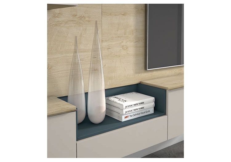 - CAJONES: Guías ocultas reforzadas con regulación de altura y cierre amortiguado (con tirador) o sistema Push (sin tirador)
