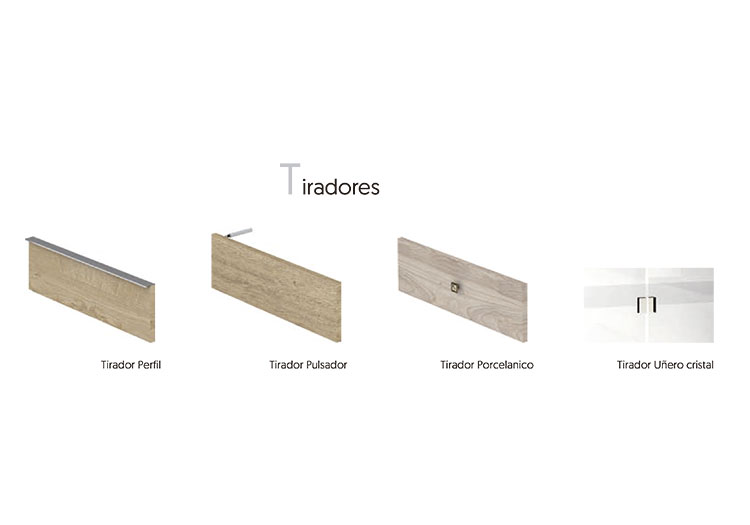 - Todos los muebles llevan incluido en el precio, el pulsador o tirador porcelanico. Tirador Perfil Opcional (no incluido en el precio)