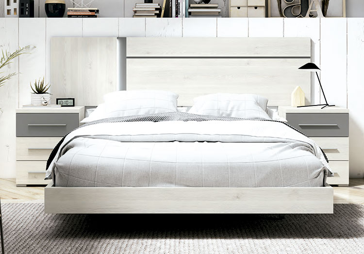 - Compuesto por cabecero y dos mesitas de noche.